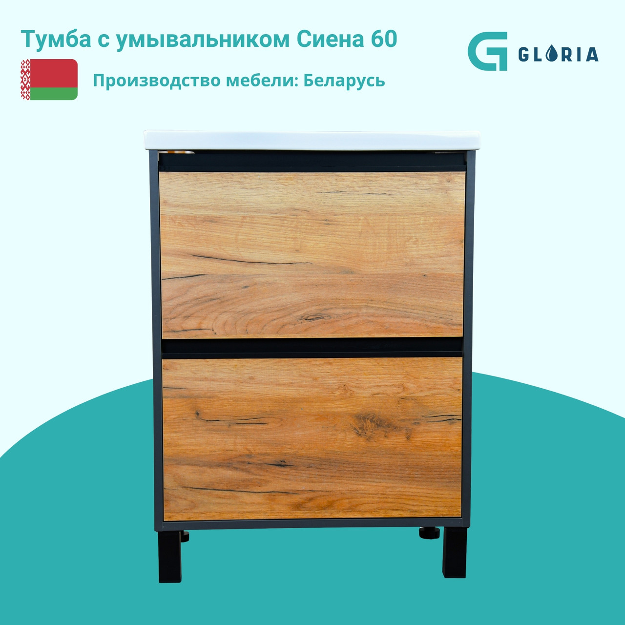 Тумба с раковиной Gloria Сиена 60, напольная, Дуб Венге