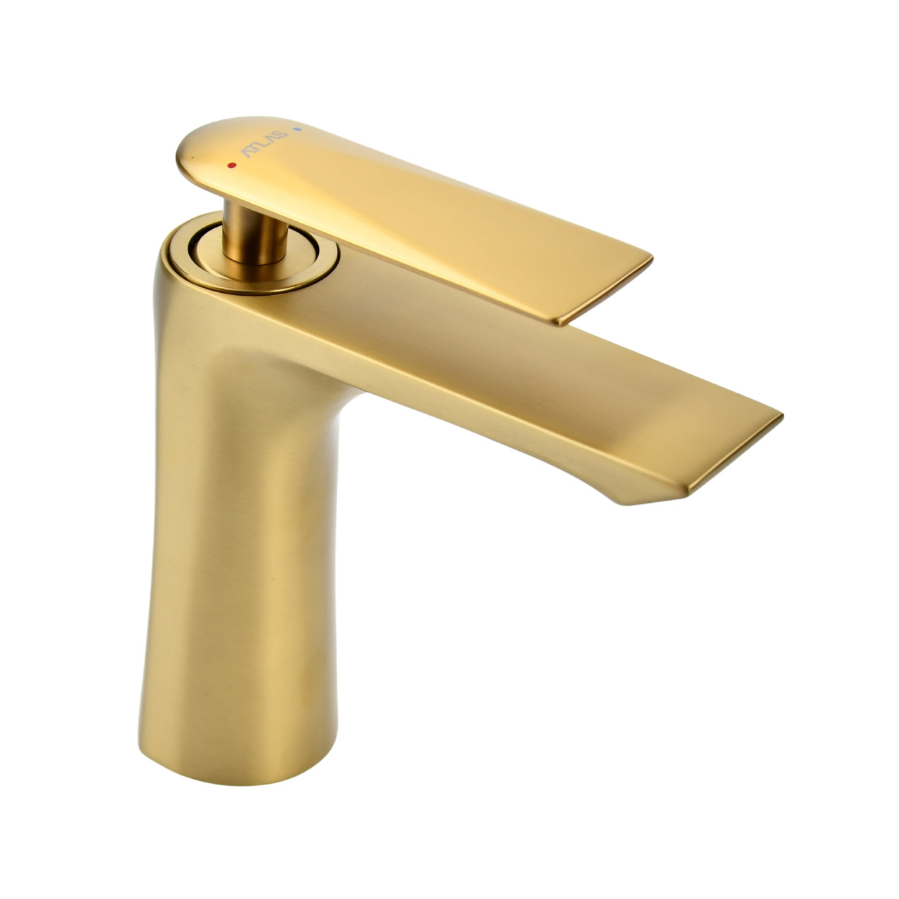 Матовый золотой цвет смотрится одновременно элегантно и сдержанно, прекрасно сочетаясь с любой цветовой гаммой интерьера. Высококачественный цинк, из которого изготовлен смеситель, гарантирует его надежность и долговечность.